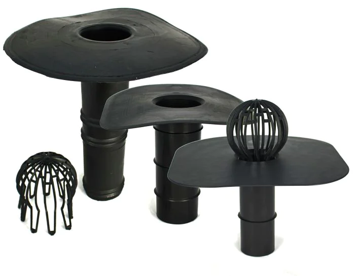 Used For: EPDM drain outlets are used to join a rainwater down pipe to the EPDM membrane where the drain runs through the roof deck.