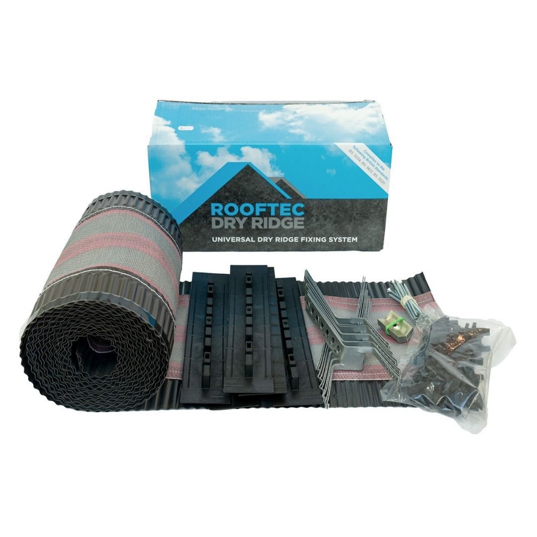 This cutting-edge Universal Dry Ridge Fixing System from Rooftec is crafted for universal roof ridge tiles, providing a dependable and user-friendly fixing solution. It boasts a quick and straightforward installation process, delivering a sturdy and resilient method for securing roof ridge tiles. The secure, adjustable clips guarantee a long-lasting and trustworthy installation for your roof ridge.